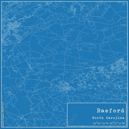 Fototapeta premium Blueprint US city map of Raeford, North Carolina.