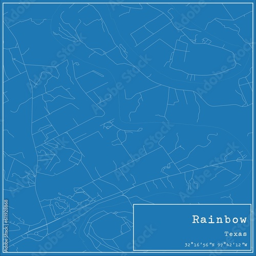 Fototapeta premium Blueprint US city map of Rainbow, Texas.