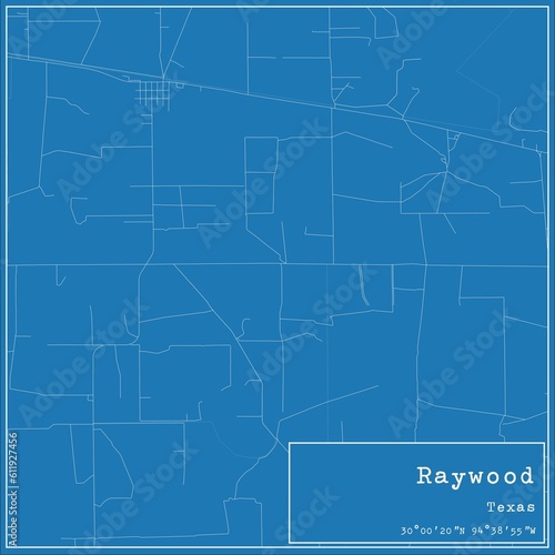 © Rezona, Fototapeta premium Blueprint US city map of Raywood, Texas.