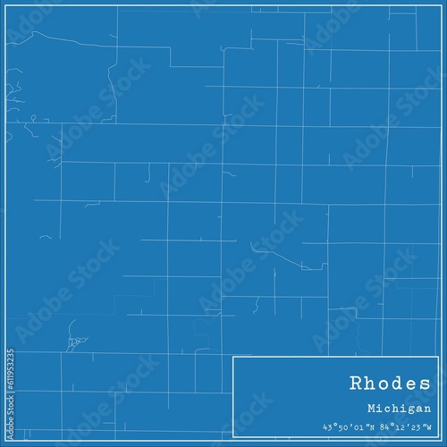 Fototapeta premium Blueprint US city map of Rhodes, Michigan.