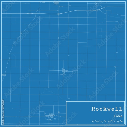 © Rezona, Fototapeta premium Blueprint US city map of Rockwell, Iowa.