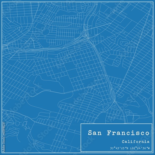 Fototapeta premium Blueprint US city map of San Francisco, California.