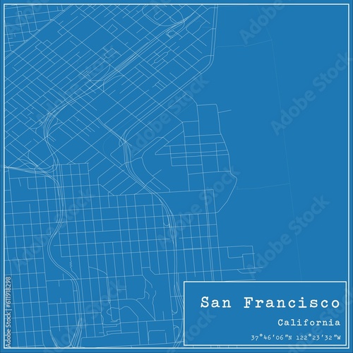 Fototapeta premium Blueprint US city map of San Francisco, California.