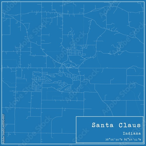 Fototapeta premium Blueprint US city map of Santa Claus, Indiana.