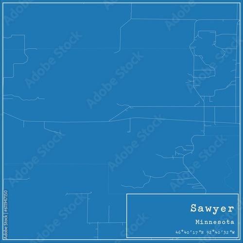 Fototapeta premium Blueprint US city map of Sawyer, Minnesota.