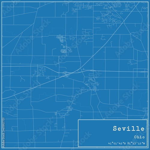 Fototapeta premium Blueprint US city map of Seville, Ohio.