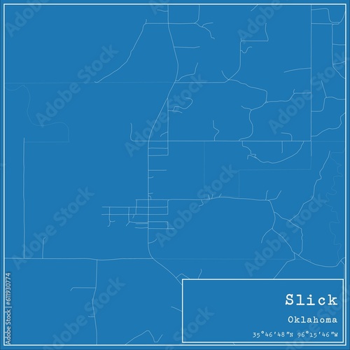 Fototapeta premium Blueprint US city map of Slick, Oklahoma.