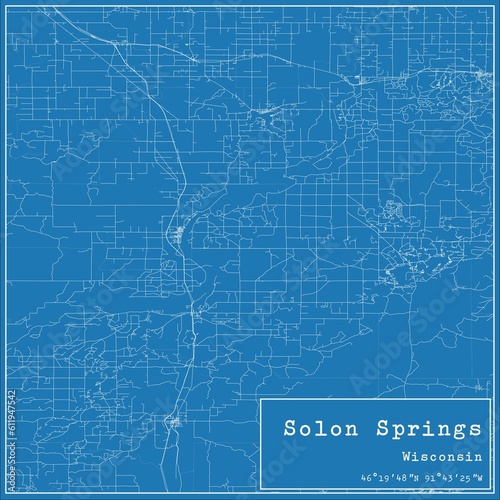 Obraz premium Blueprint US city map of Solon Springs, Wisconsin.