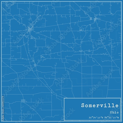 Fototapeta premium Blueprint US city map of Somerville, Ohio.