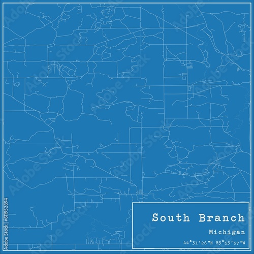 Fototapeta premium Blueprint US city map of South Branch, Michigan.