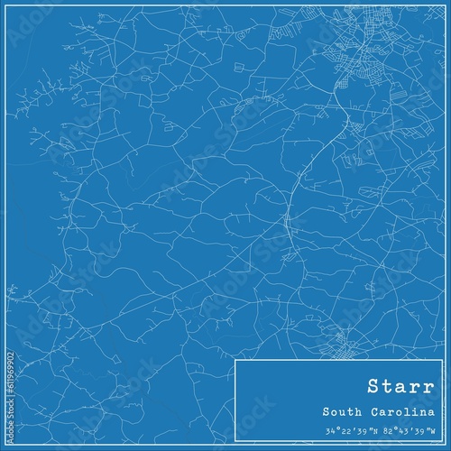 Obraz premium Blueprint US city map of Starr, South Carolina.