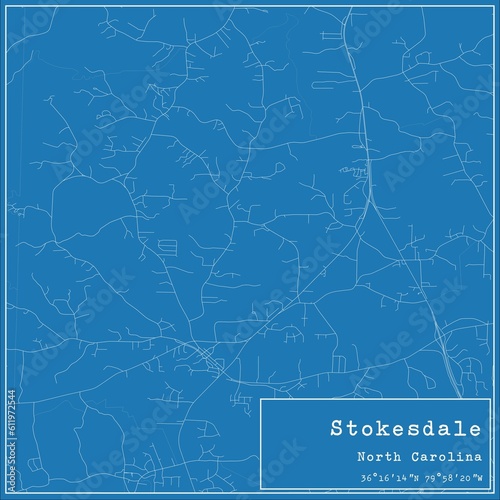 © Rezona, Fototapeta premium Blueprint US city map of Stokesdale, North Carolina.