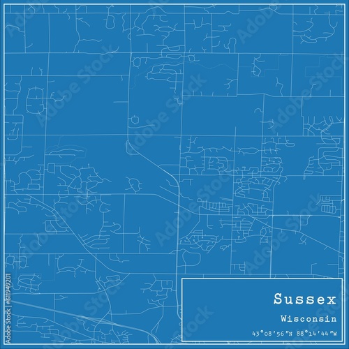 Fototapeta premium Blueprint US city map of Sussex, Wisconsin.