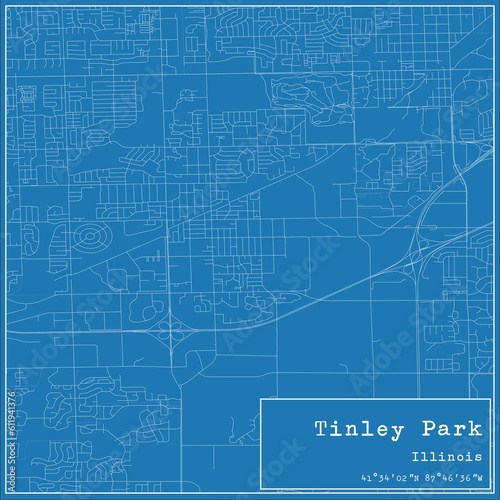 Fototapeta premium Blueprint US city map of Tinley Park, Illinois.