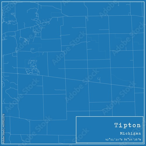 Fototapeta premium Blueprint US city map of Tipton, Michigan.