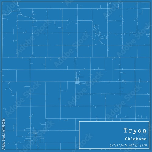 © Rezona, Fototapeta premium Blueprint US city map of Tryon, Oklahoma.