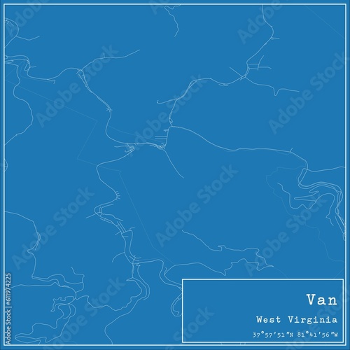 Obraz premium Blueprint US city map of Van, West Virginia.