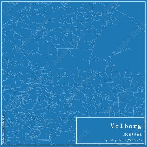 Fototapeta premium Blueprint US city map of Volborg, Montana.