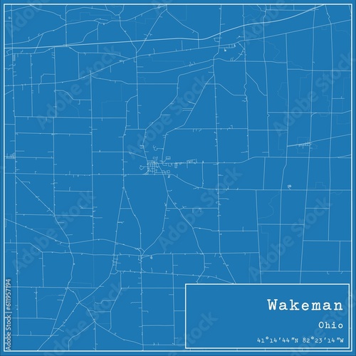 Fototapeta premium Blueprint US city map of Wakeman, Ohio.