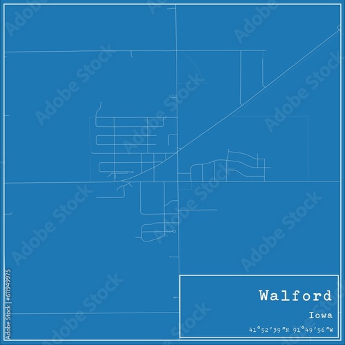 Naklejka premium Blueprint US city map of Walford, Iowa.