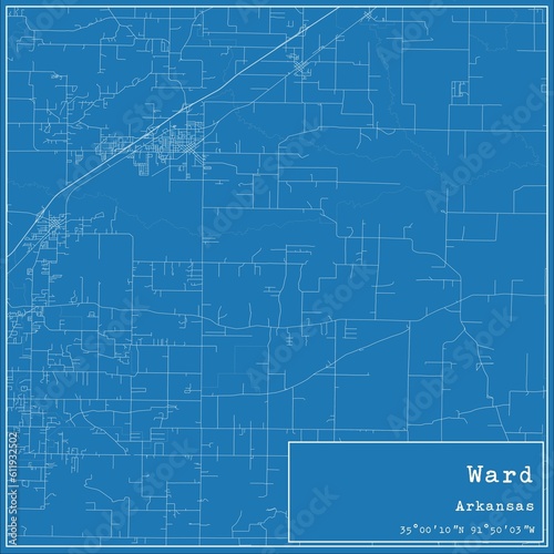 © Rezona, Fototapeta premium Blueprint US city map of Ward, Arkansas.