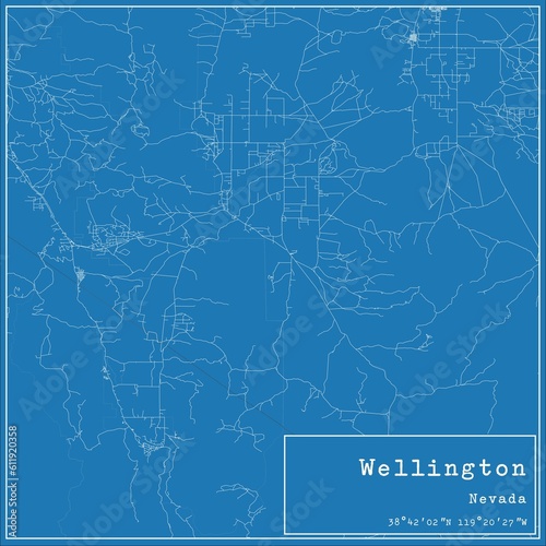 Fototapeta premium Blueprint US city map of Wellington, Nevada.