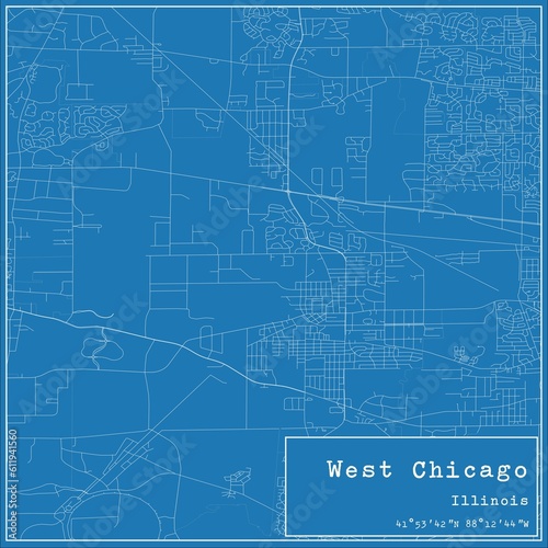 Fototapeta premium Blueprint US city map of West Chicago, Illinois.