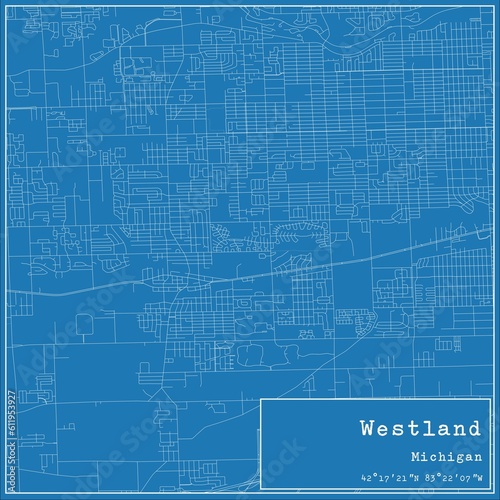 Fototapeta premium Blueprint US city map of Westland, Michigan.