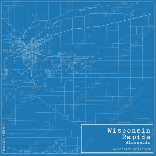 Fototapeta premium Blueprint US city map of Wisconsin Rapids, Wisconsin.