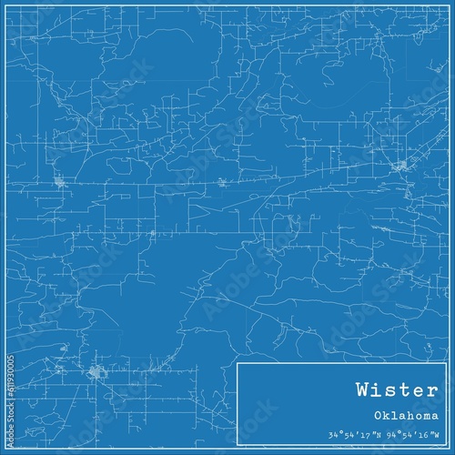 Fototapeta premium Blueprint US city map of Wister, Oklahoma.