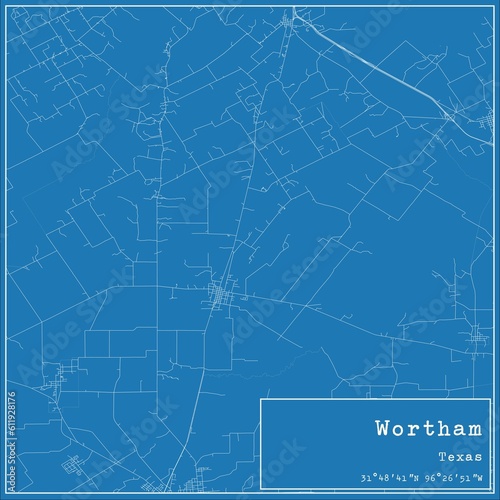 © Rezona, Fototapeta premium Blueprint US city map of Wortham, Texas.