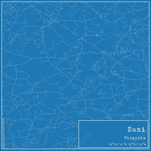 Obraz premium Blueprint US city map of Zuni, Virginia.