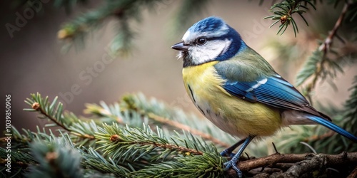 Obraz premium Bluetit Bird Resting on Tree Branch - Stunning Product Photography for Nature...