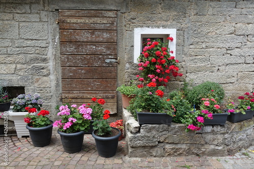 © Fotolyse, Naklejka premium Blumen an einem Haus in Besigheim