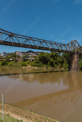 Fototapeta premium Blumenau, Santa Catarina: Ponte Aldo Pereira de Andrade (Ponte de Ferro) sobre Rio Itajaí-açu