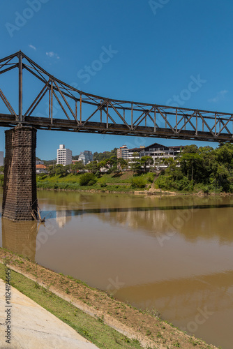 Fototapeta premium Blumenau, Santa Catarina: Ponte Aldo Pereira de Andrade (Ponte de Ferro) sobre Rio Itajaí-açu