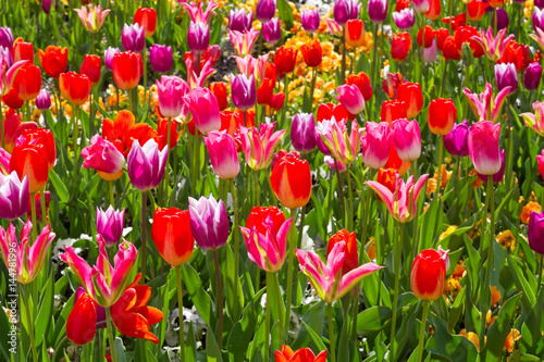 Fototapeta premium Blumenbeet mit bunten Tulpen