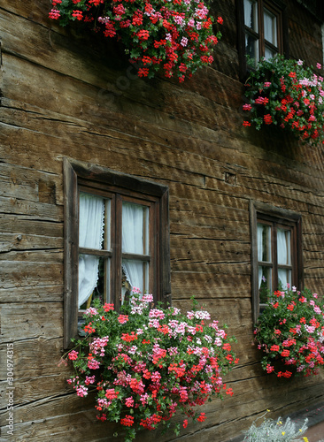 © Jörg Lantelme, Naklejka premium Blumenkästen am Fenster in Bayern