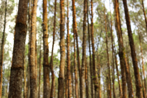 © Azmi, Obraz premium Blur background of a forest with dense trees in sunny weather.