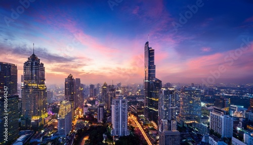 © Turan, Obraz premium blur effect Design of amazing skyscrapers and city buildings, skyline, dusk modern building
