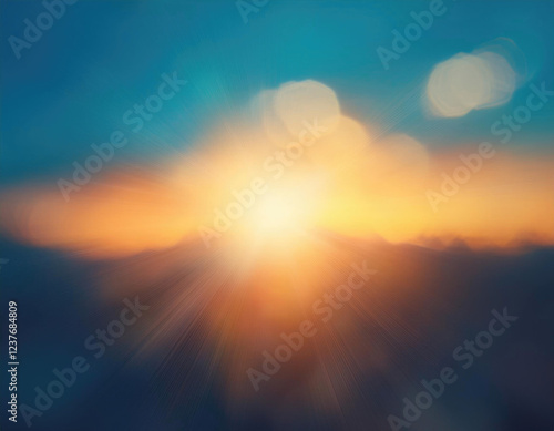 © Jathurshan, Fototapeta premium Blur glow overlay. Lens flare filter. Bokeh sunlight glare leak. Retro illumination effect. Defocused orange blue white light abstract background.