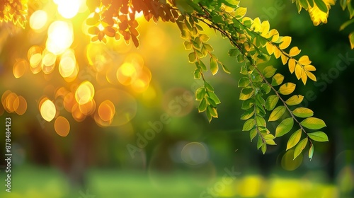 Obraz premium Blur Green Tree Abstract: Summer Park Background with Sunlight - Creative...