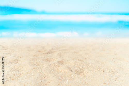 Fototapeta premium Blur tropical beach with bokeh sun light wave abstract background.