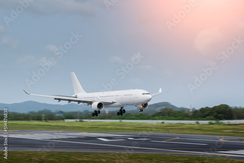 Obraz premium blur withe airplane landing on runway
