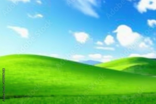 © Pat, Fototapeta premium Blured vibrant green hills, clear blue sky, white cloudscape, hill, beautiful