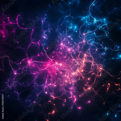 © Akash, Obraz premium blurred abstract shapes with glowing neon effects on a dark background