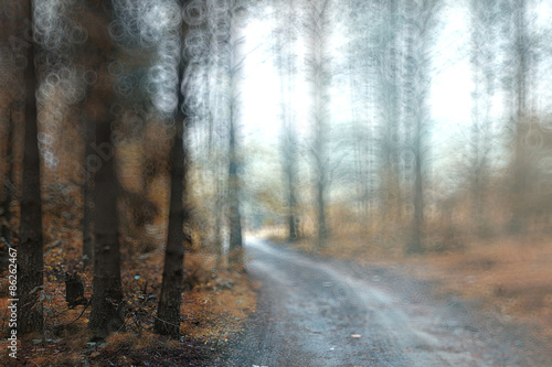 Fototapeta premium blurred background autumn forest with yellow leaves