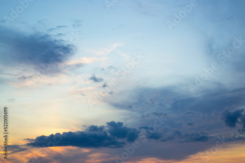 Obraz premium Blurred background. Blue sky and white fluffy clouds.