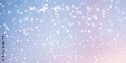 © Vladimir, Fototapeta premium Blurred background. Christmas background with fir tree and decor. Top view with copy space