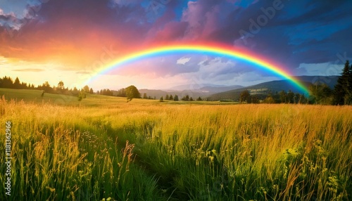 © Carmein, Obraz premium Blurred background of a lovely rainbow showing its colors at twilight time, creating a stunning and peaceful view and atmosphere.
